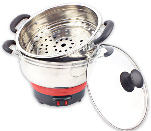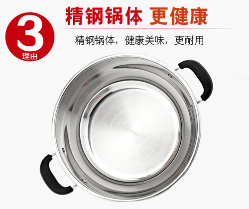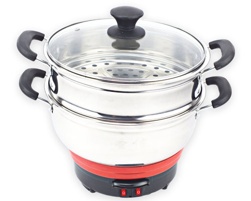 24/26CM小電熱鍋,24CM 26CM兩種規(guī)格,內(nèi)有兩根加熱管獨立加熱,雙檔控制,內(nèi)部設(shè)有溫控器,可有效防止干燒導(dǎo)致電熱鍋的損壞,配置不銹鋼一體蒸籠,更結(jié)實更美觀。